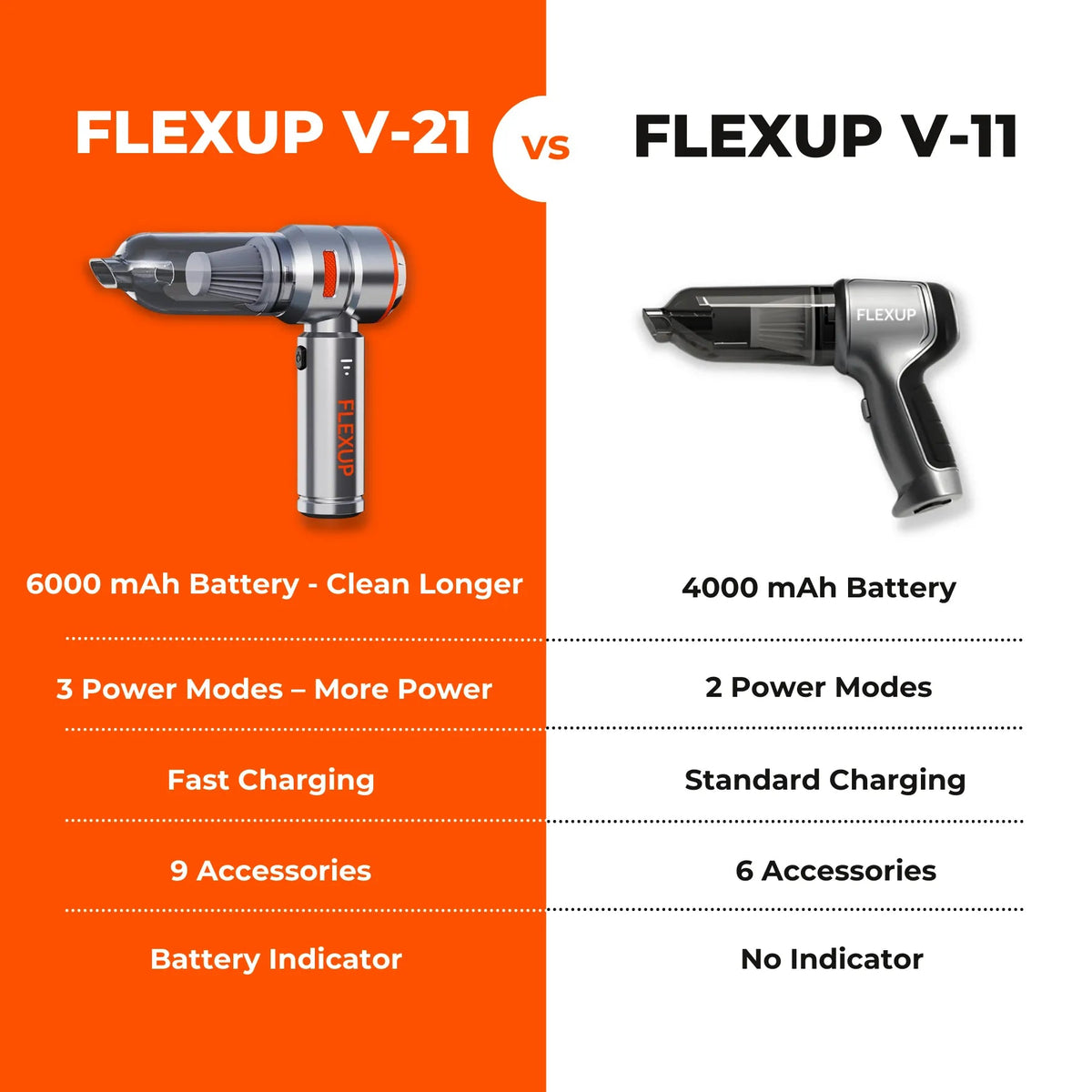 The FlexUp vacuum has a long-lasting battery that can provide reliable cleaning power for extended periods. Its battery life can last around 20–30 minutes on a single charge, depending on usage.